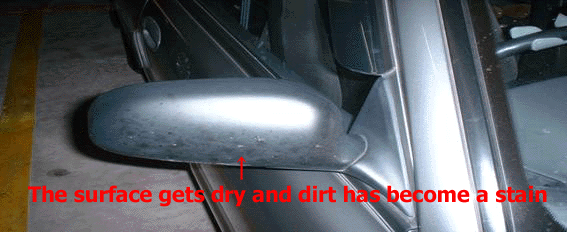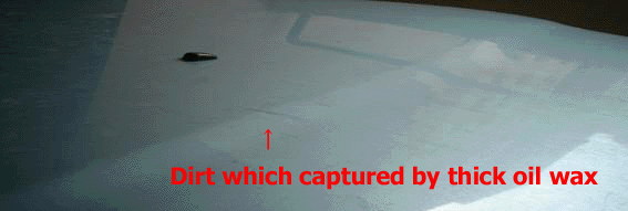 | Oil based wax is applied thickly The excess wax flows out and absorbs dirt The trapped dirt sticks to the paint surface when exposed to acid rain and sunrays |